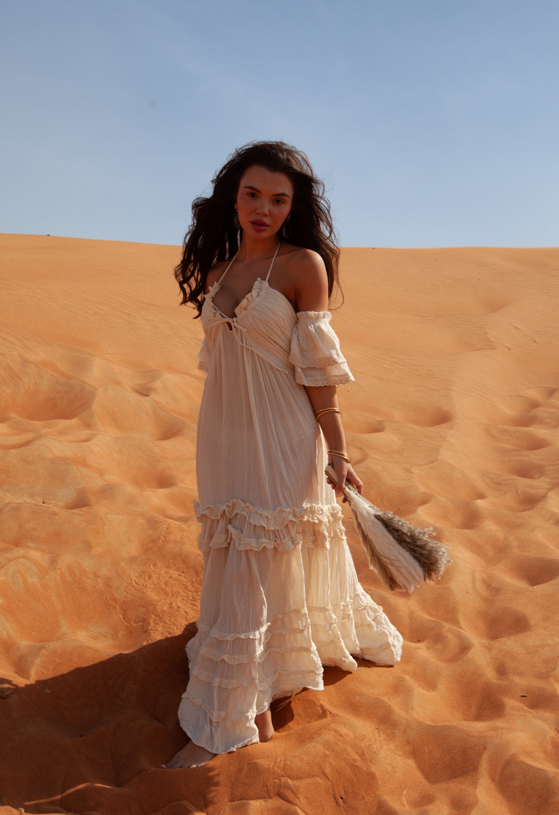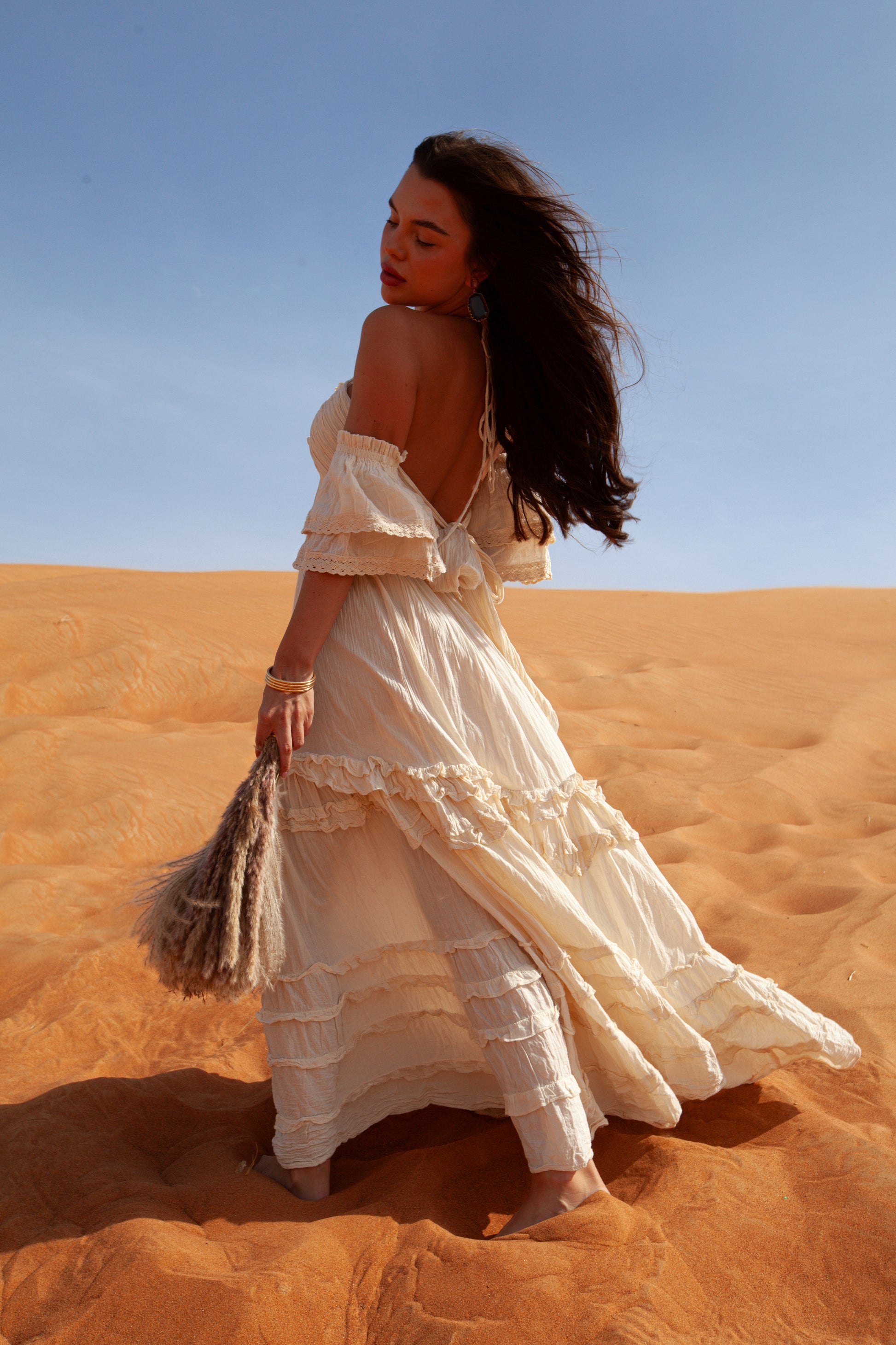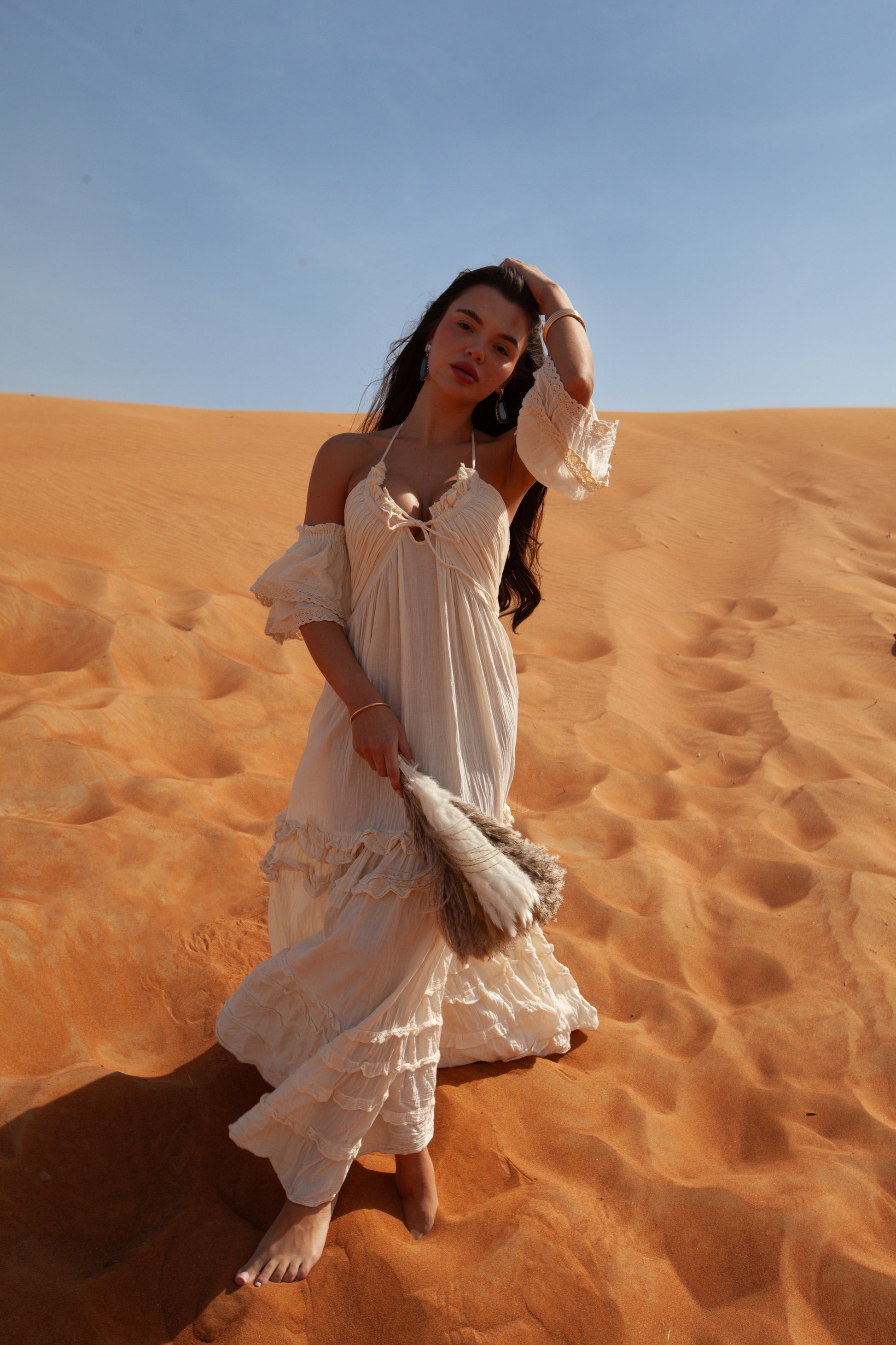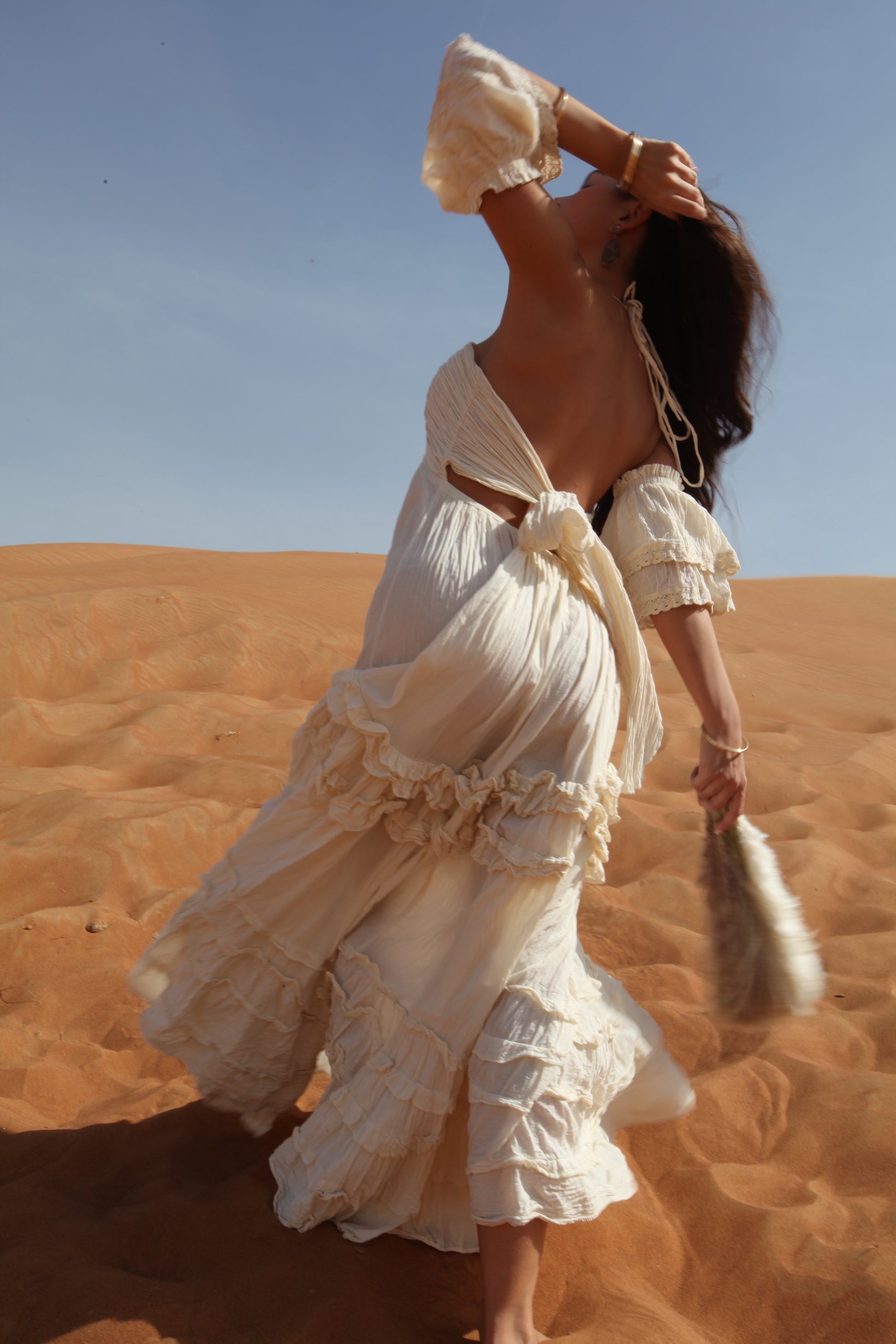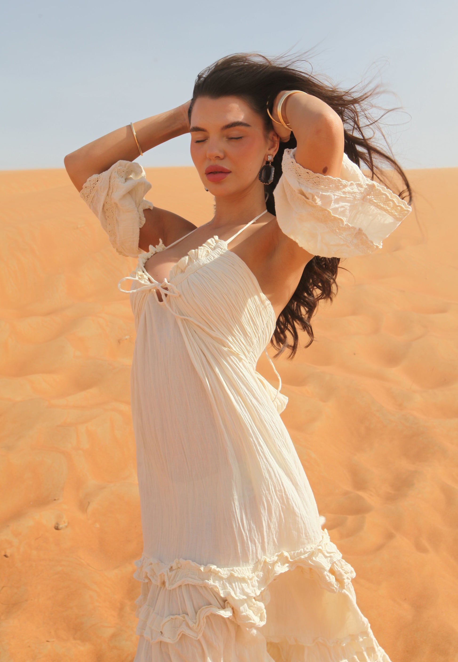 Step into the elegance of a bygone era with our long Victorian Vintage handmade dress, crafted with a modern twist from 100% organic cotton. This enchanting piece features delicate ruffles and a gorgeous balconette front, exuding timeless charm.