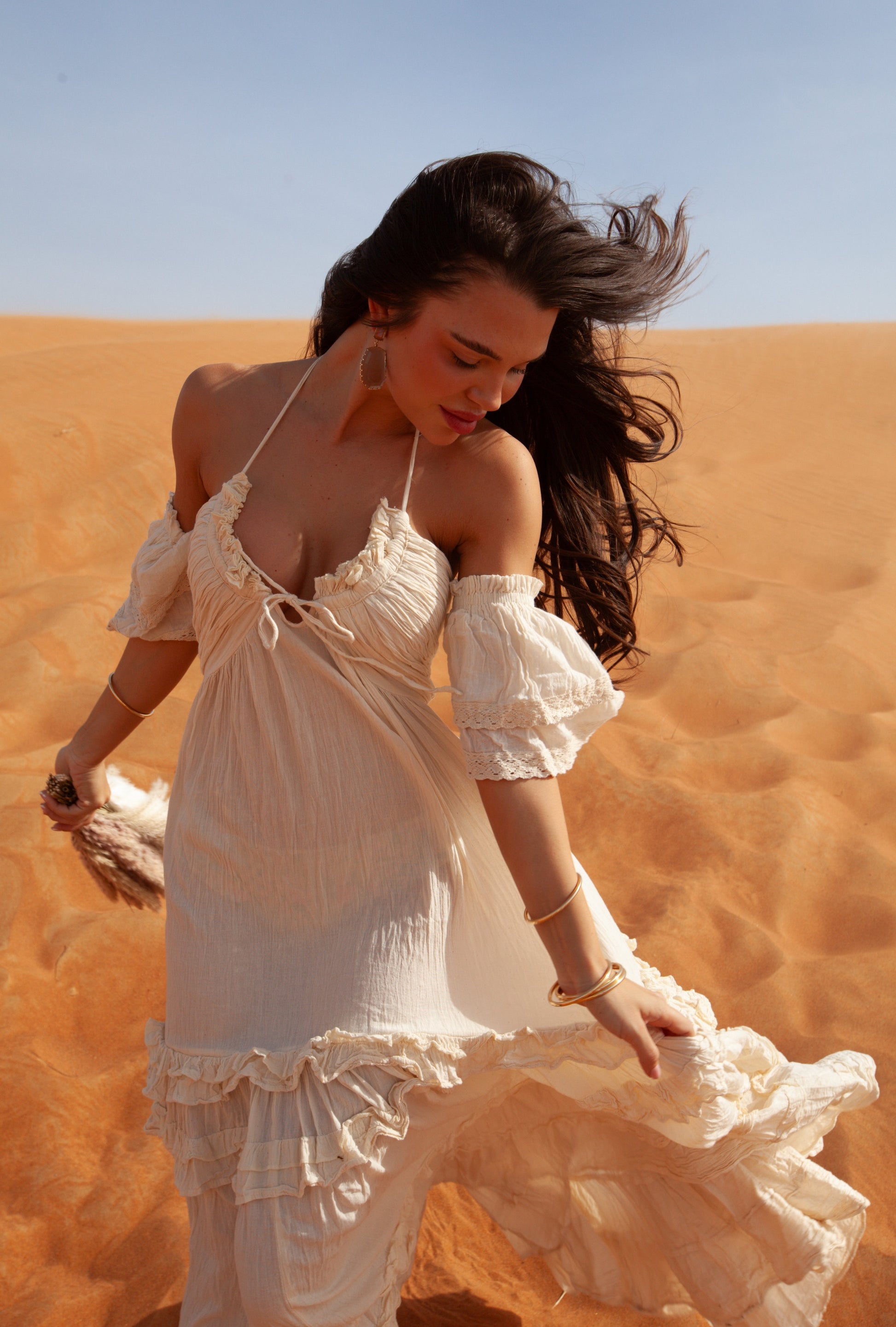 Handmade with care from 100% organic cotton, this dress is available in eco-friendly white, dyed using environmentally friendly methods.