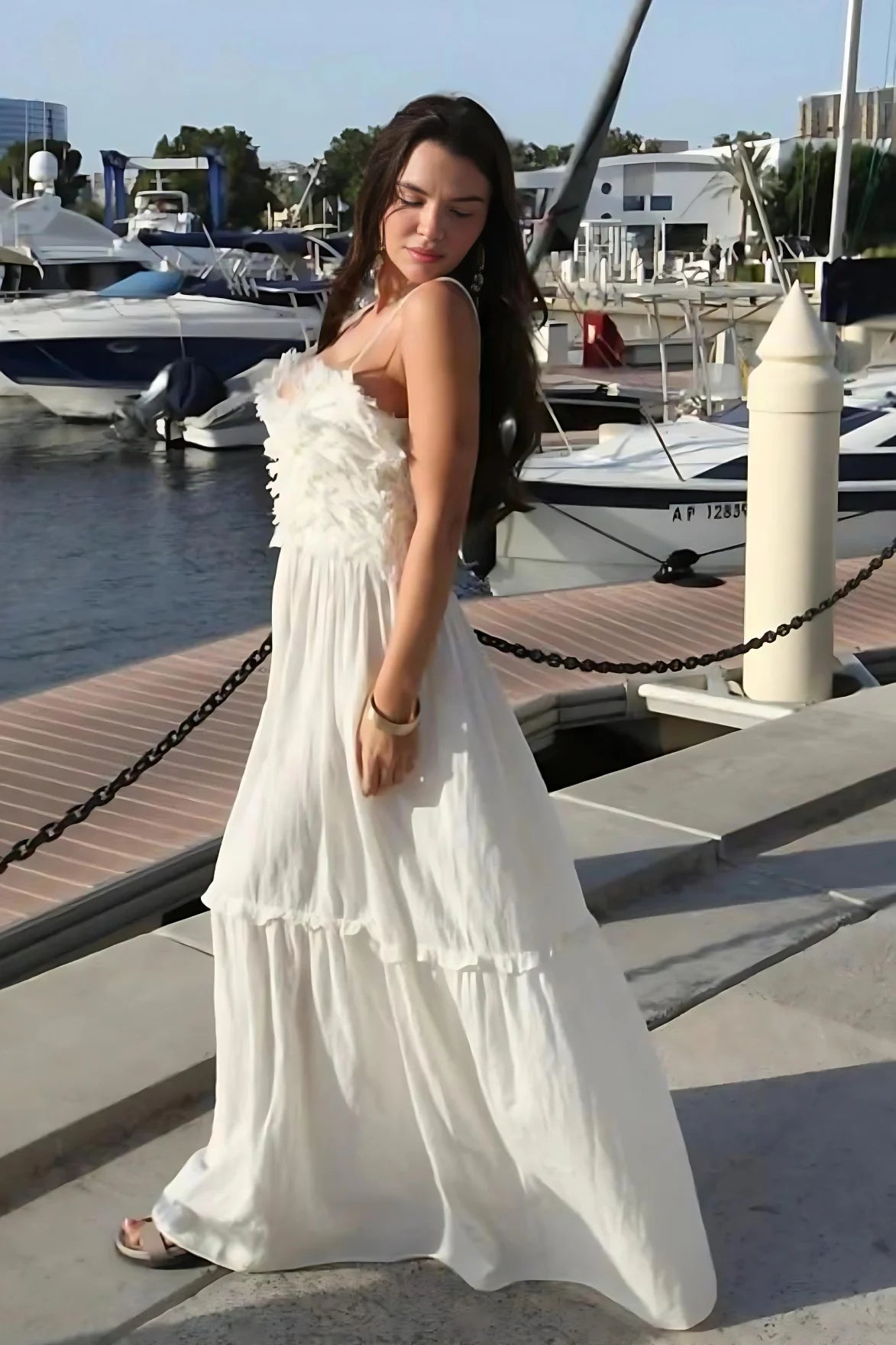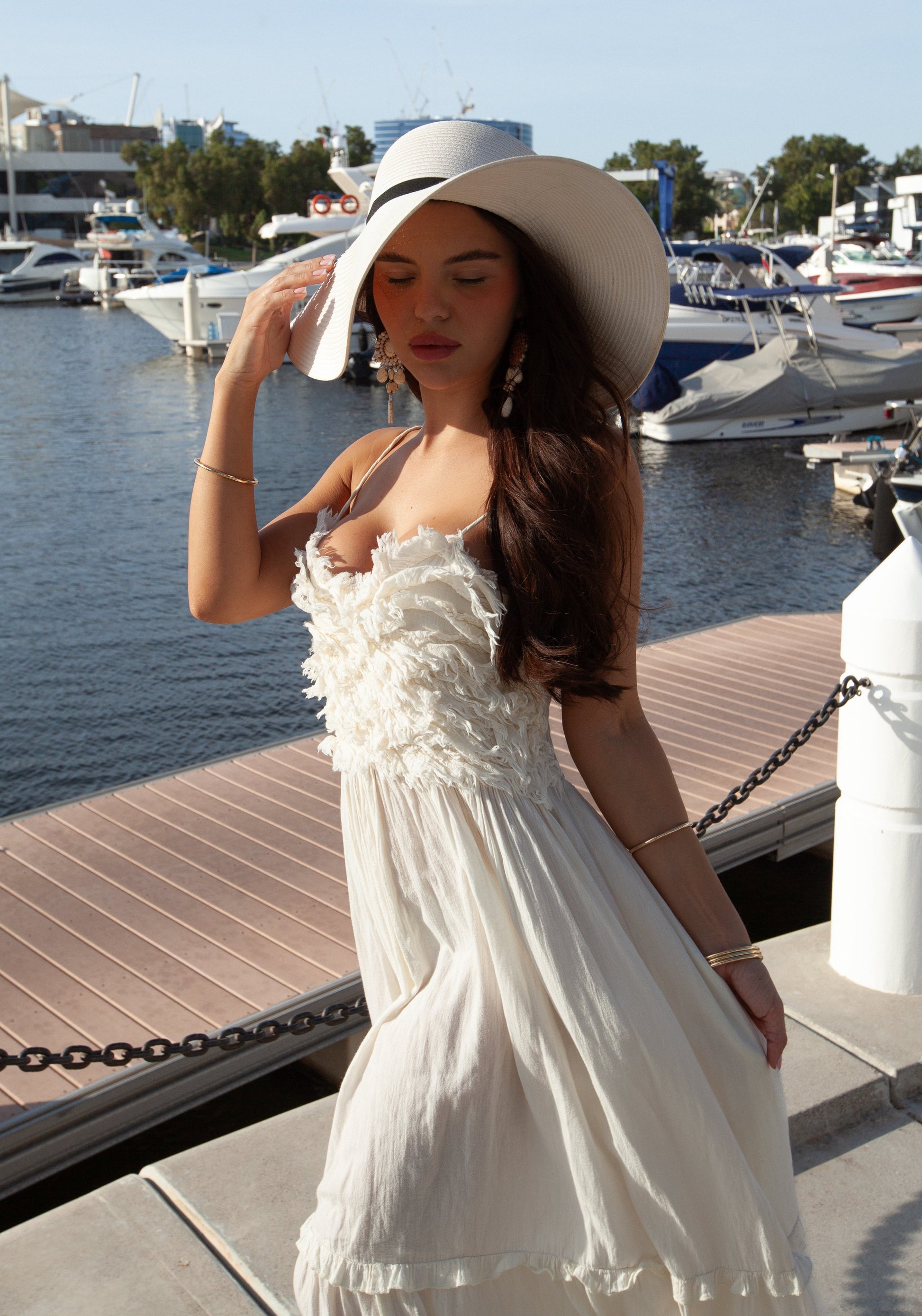 Designed to captivate with its sensual allure, our long frill handmade dress is crafted from 100% organic cotton.